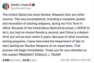 Note to Trump: Nuclear Weapons are Obsolete...And a Live with Michael McFaul