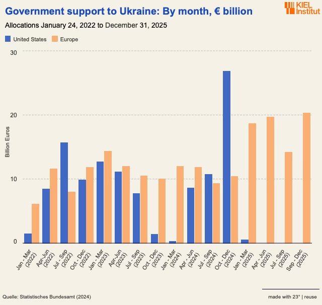 Beginning in 2022, U.S. President Joe Biden delivered military and humanitarian aid to Ukraine -- albeit too haltingly -- and rushed more out as he was preparing to leave office. But according to the Kiel Institute for the World Economy, U.S. support for Ukraine stopped in the second quarter of 2025 -- the first quarter that Trump was president for the entire period. European countries have filled the financial gap left by Washington and still buy U.S. weapons and send them to Ukraine. The message coming from Washington is clear: the Trump Administration is okay with U.S. weapons manufacturers making money off of the war, but it doesn’t want to contribute to the pot itself.